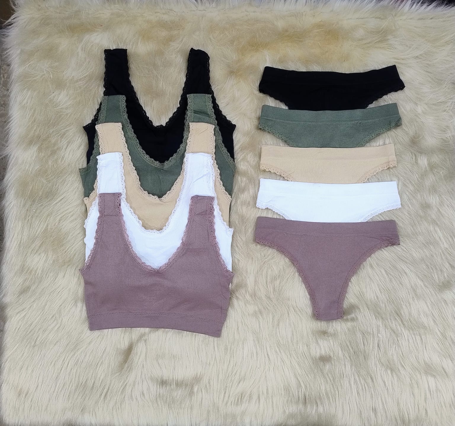 Conjunto deportivo con bretel ancho y puntilla con colaless entera. Talles S/M L/XL, surtido de colores.